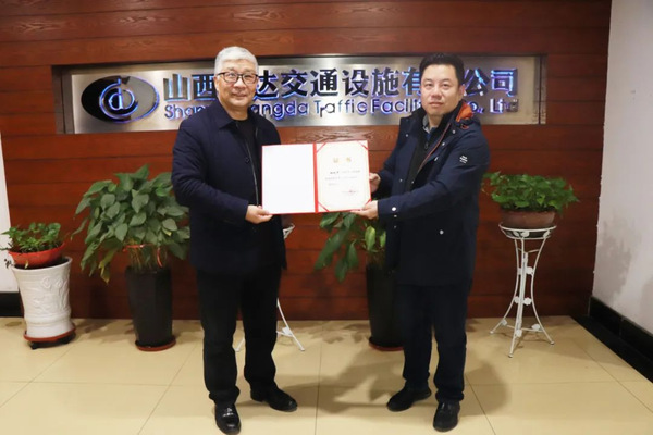 11月21日,山西省综改示范区人才交流中心董弘毅一行到山西长达交通设施有限公司调研,并为杜利民董事长颁发“山西省委联系服务专家”证书。